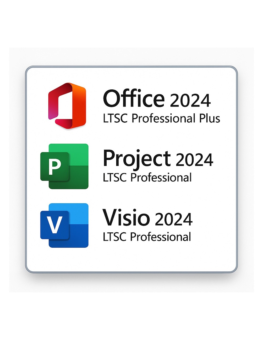 - Incluye: Office 2024 LTSC Pro Plus + Project 2024 Ltsc Pro + Visio 2024 Ltsc Pro